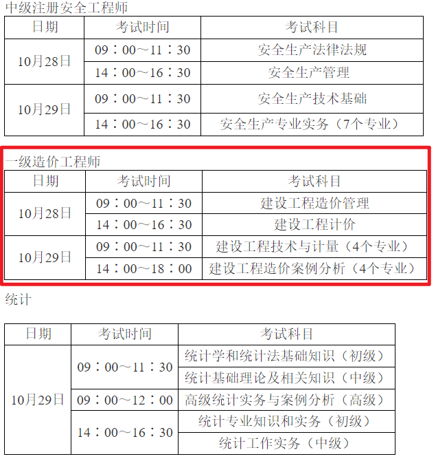 2023年度注册安全工程师、一级造价工程师职业资格考试、统计专业技术资格考试将于10月28-29日开考。请考生10月23日起登录原报名网站打印准考证,仔细查看考试时间、考试地点、考场号及座位号。以下相关注意事项,请关注!