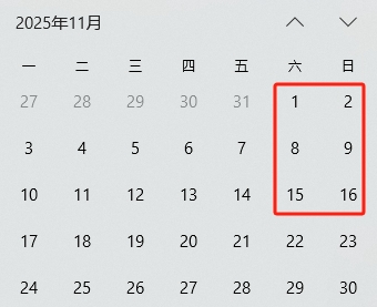 历年税务师考试时间均集中在11月上旬和中旬,考试时间为期两天,结合2025年11月日历,预测2025年税务师考试时间可能在第1-3周的周末,即11月1-2日、11月8-9日或11月15-16日3个时间段。
