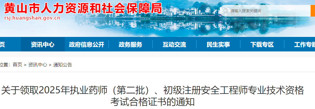 根据黄山市人力资源社会保障局发布的“关于领取2025年执业药师(第二批)、初级注册安全工程师专业技术资格考试合格证书的通知”,2025年安徽黄山第二批执业药师证书领取时间为2026年1月29日前。原文详情如下: