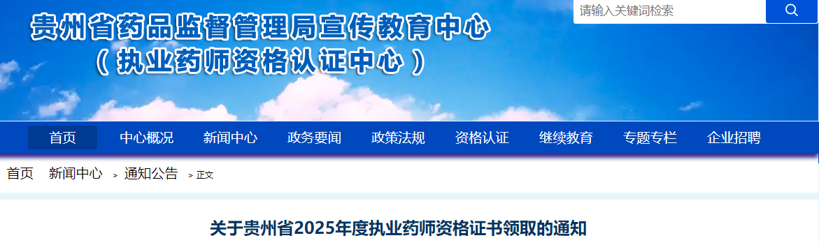 根据贵州省药品监督管理局宣传教育中心发布的“关于贵州省2025年度执业药师资格证书领取的通知”,2025年贵州执业药师证书现场领取时间为1月15日至23日。详情如下: