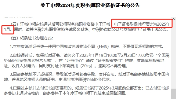 2024年税务师电子证书什么时候生成