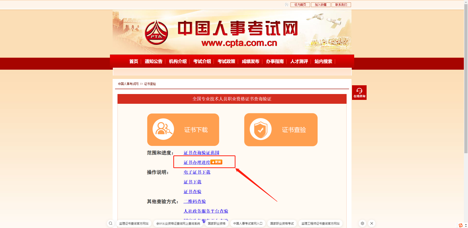 登录“中国人事考试网”网址http://www.cpta.com.cn/
