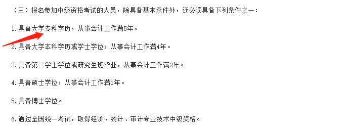 (三)报名参加中级会计资格考试的人员,除具备基本条件外,还必须具备下列条件之一: