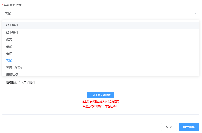 3.选择继续教育形式:参加中级会计考试并通过考试选择“考试”;