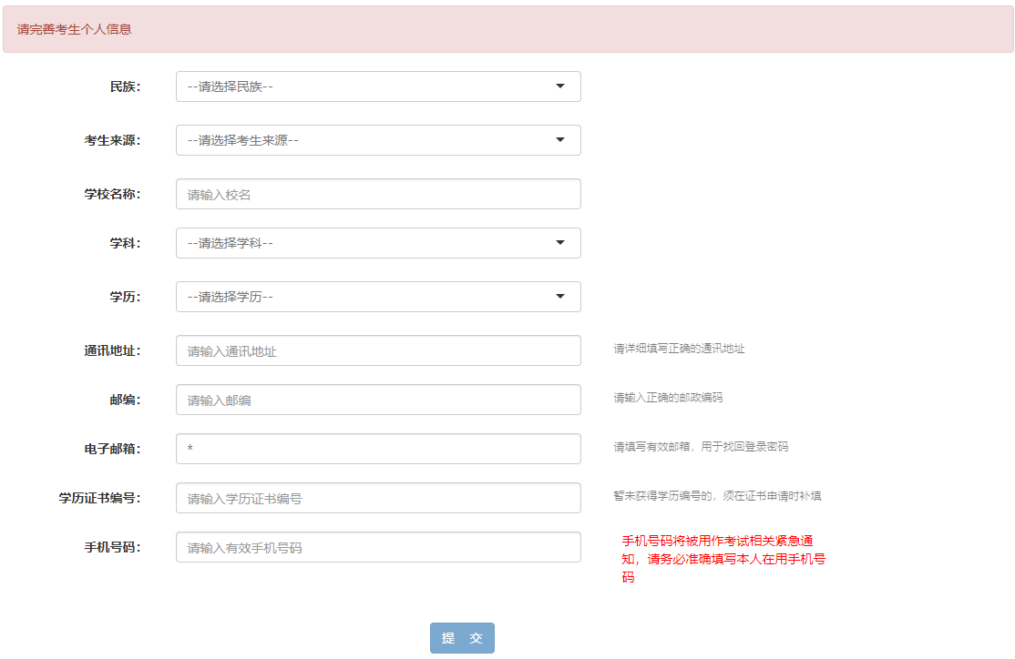 1、请选择您的所在地及报考区域,所在地的归属省将决定报考区域可选择范围。