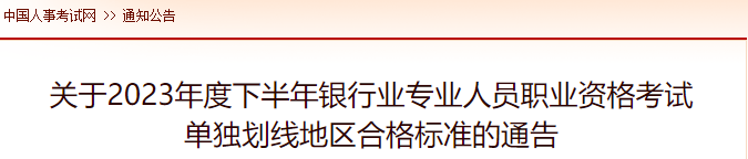 关于2023年度下半年银行业专业人员职业资格考试单独划线地区合格标准的通告