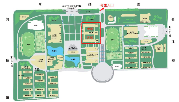 本次考试地点为扬州工业职业技术学院(扬州市华扬西路199号,北1门进入)如下图: