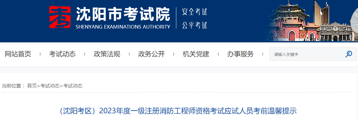 近日,沈阳市考试院发布了《2023年度一级注册消防工程师资格考试应试人员考前温馨提示》,其中对沈阳2023年一级消防工程师考试时间、准考证打印时间、提前入场时间、考试物品携带等事项作出具体安排。
