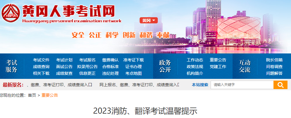 2023年度全国一级注册消防工程师、翻译专业资格(水平)笔译考试11月4日-5日举行,为方便黄冈考区考生顺利参加考试,现就有关注意事项提示如下: