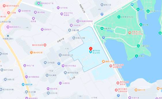 地址:湖北省黄冈市黄州区东坡大道62号(如下图)。市内可乘坐8、9、16、25、81路公交车到黄冈科技职业学院附近下车。