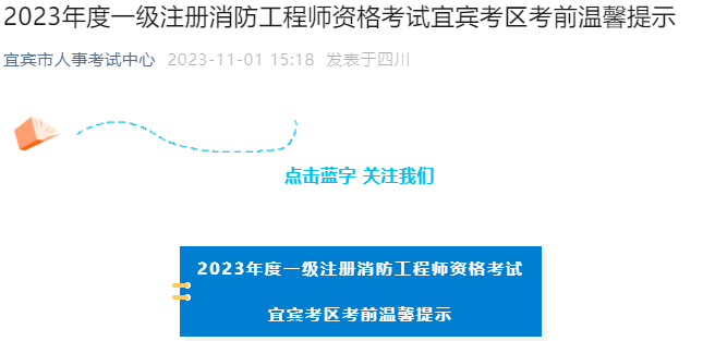 2023年11月1日,宜宾市人事考试中心发布了《2023年度一级注册消防工程师资格考试宜宾考区考前温馨提示》,其中明确宜宾一级消防工程师考试于11月4日-5日举行,考生需注意物品携带、入场时间、作答规范等事项。