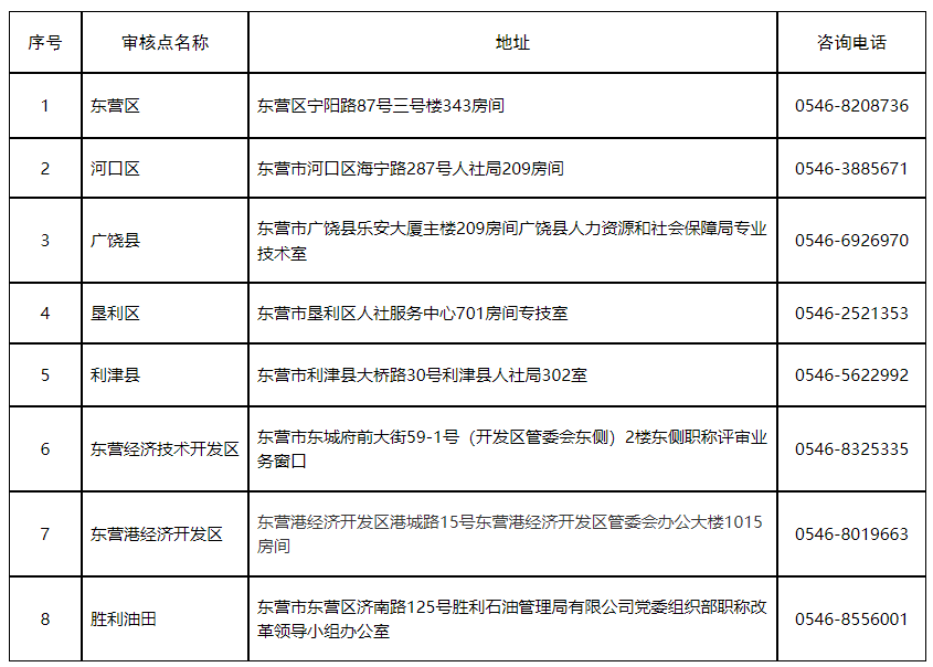 为做好东营市人事考试资格核查、复核工作,在全市设立8个现场核查点(见下表):