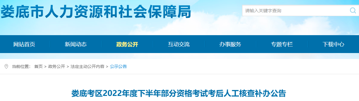 根据湖南人事考试网《关于2022年度下半年部分资格考试(含补考)考后人工核查补办公告》的要求,现将娄底考区2022年度下半年部分资格考试(含补考)考后人工核查补办工作有关事项公告如下:
